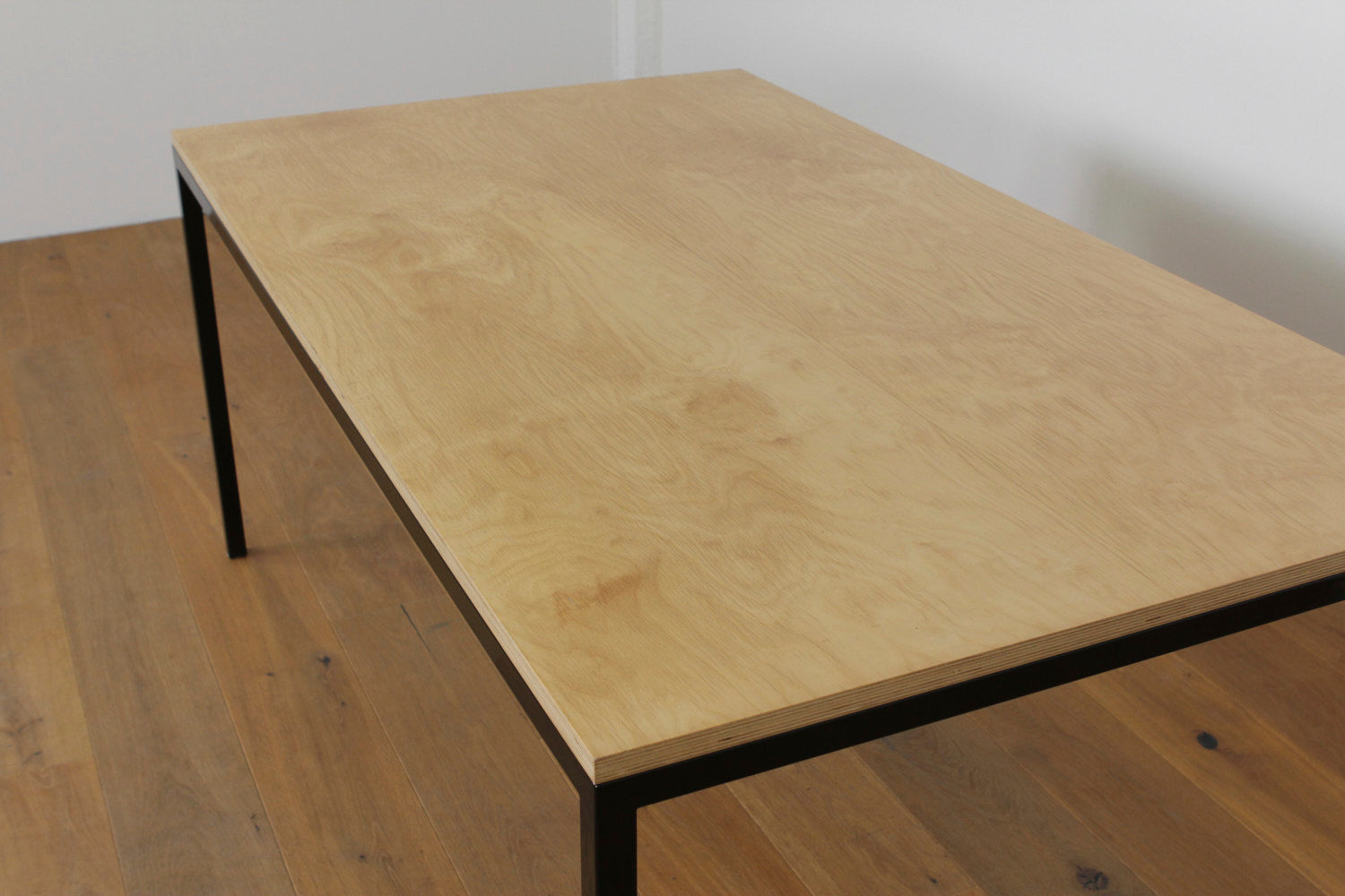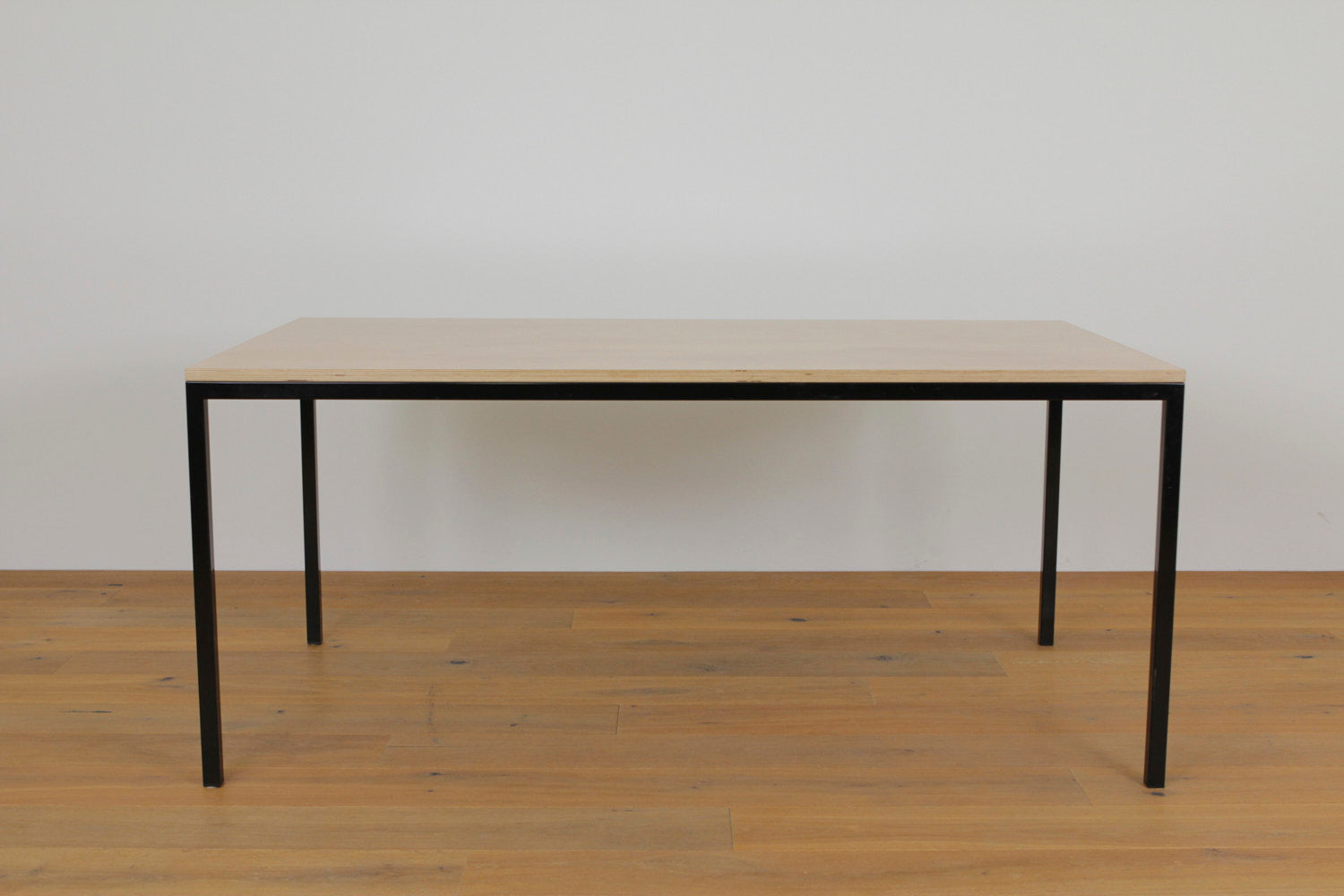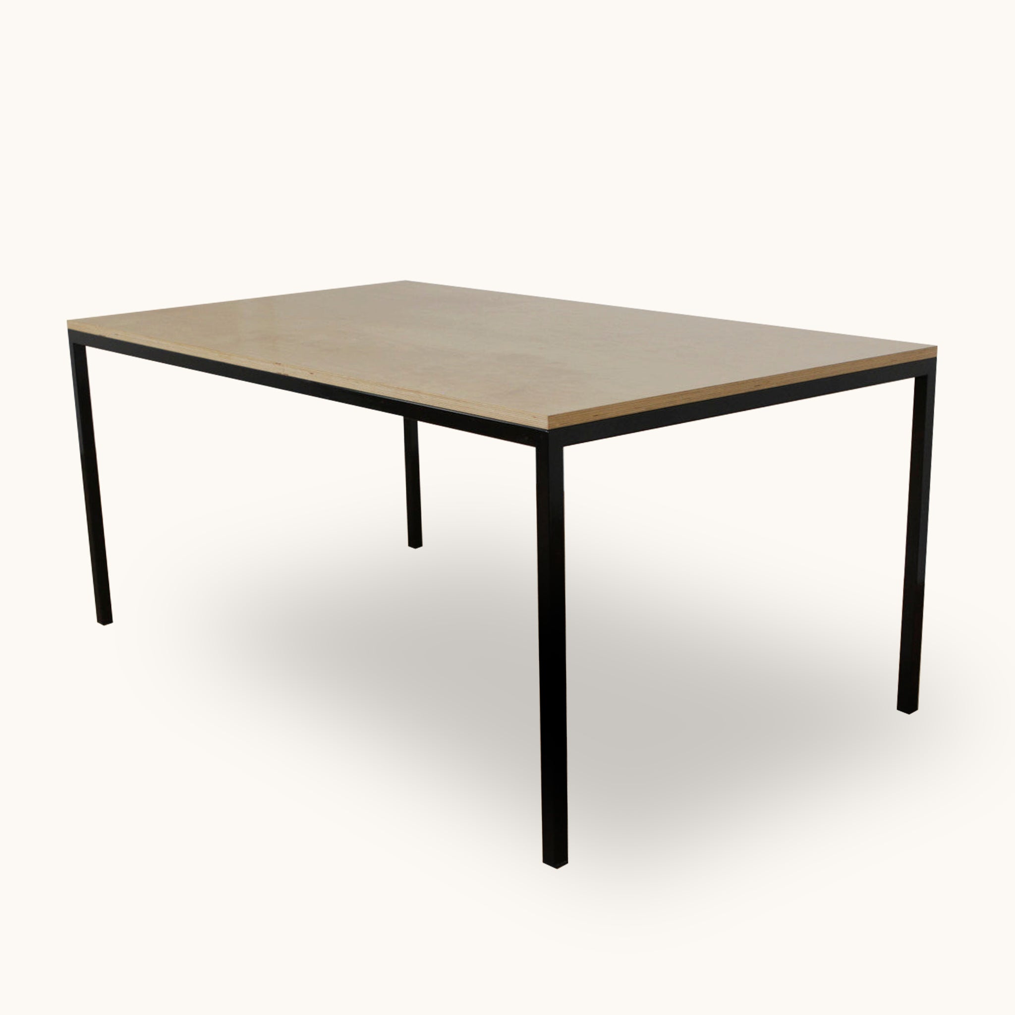 Esstisch Birke vom Schweizer Möbelhersteller Lehni, pulverbeschichtetes Gestell aus Vierkantstahlrohr und Birkenschichtholz mit Kunstharz.