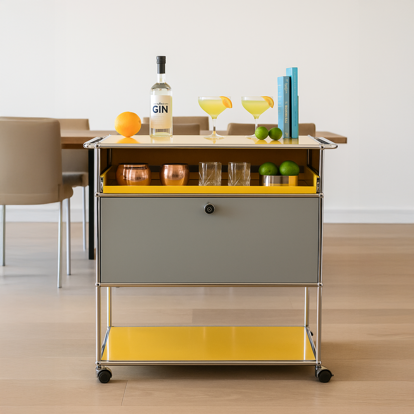 Der USM Bartrolley ist die perfekte Kombination aus ikonischem Design, hochwertiger Verarbeitung und praktischer Funktionalität – ein stilvoller Hingucker für jede Wohn- oder Büroumgebung.