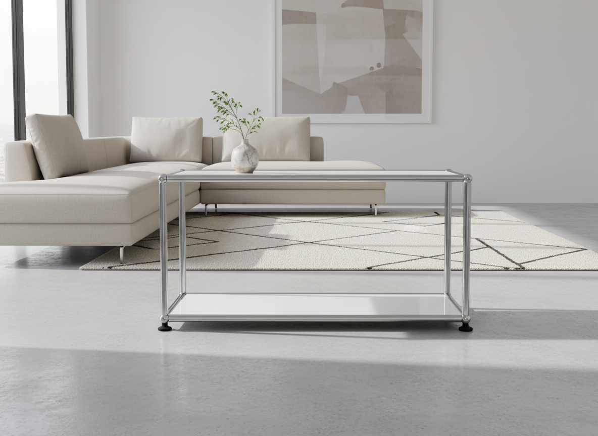 Der USM Haller Beistelltisch #1104 überzeugt durch zeitloses, minimalistisches Design und hochwertige Verarbeitung. Mit klaren Linien und einer glänzenden Oberfläche fügt sich der Beistelltisch harmonisch in moderne Wohn- und Arbeitsbereiche ein. Das vielseitige Möbelstück ist in allen USM Farben erhältlich und kann individuell konfiguriert werden, um perfekt zu Ihrem Einrichtungsstil zu passen. Ideal als Ablage, Nachttisch oder stilvolles Statement-Piece – der USM Haller Beistelltisch #1104 vereint Funktionalität und Ästhetik auf höchstem Niveau.