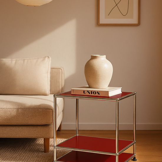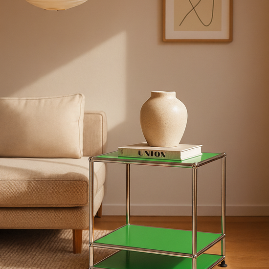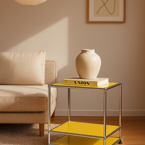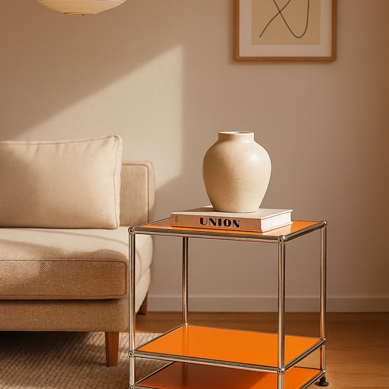 Der USM Haller Beistelltisch überzeugt durch zeitloses Design, hochwertige Verarbeitung und klare Linien. Die glänzende Oberfläche und die präzise Verarbeitung machen ihn zum stilvollen Blickfang in jedem Raum. Der Beistelltisch ist in allen USM Farben erhältlich und kann individuell konfiguriert werden, um perfekt zu Ihrem Einrichtungsstil zu passen. Ideal als Ablage, Nachttisch oder Design-Statement – der USM Haller Beistelltisch vereint Funktionalität und Ästhetik auf höchstem Niveau.