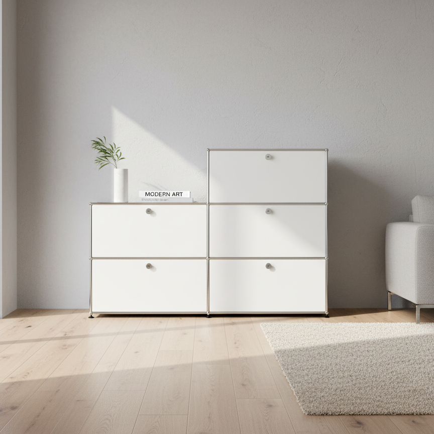 Das USM Haller Highboard #1002 überzeugt durch zeitloses Design, makellose Verarbeitung und klare Linien. Die glänzende Oberfläche unterstreicht die hochwertige Optik und macht das Highboard zum stilvollen Blickfang in jedem modernen Wohn- oder Arbeitsbereich. Dank der modularen Bauweise lässt sich das Highboard individuell anpassen und in allen USM Farben bestellen. Ob als eleganter Stauraum oder als Design-Statement – das USM Haller Highboard #1002 vereint Funktionalität, Flexibilität und Ästhetik auf höchstem Niveau. Ideal für alle, die Wert auf Qualität, Langlebigkeit und individuelles Design legen.