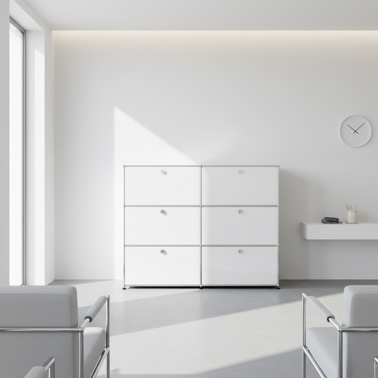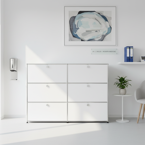 Das USM Haller Highboard #1191 überzeugt durch zeitloses Design, makellose Verarbeitung und klare Linien. Die glänzende Oberfläche unterstreicht die hochwertige Qualität und macht das Highboard zum stilvollen Blickfang in jedem Raum. Es bietet großzügigen Stauraum und lässt sich flexibel an individuelle Bedürfnisse anpassen. Das Highboard ist in allen USM Farben erhältlich und kann nach Wunsch individualisiert werden – ideal für moderne Praxen, Büros oder Wohnräume. Setzen Sie auf langlebige Qualität und vielseitige Einsatzmöglichkeiten mit dem USM Haller Highboard #1191.
