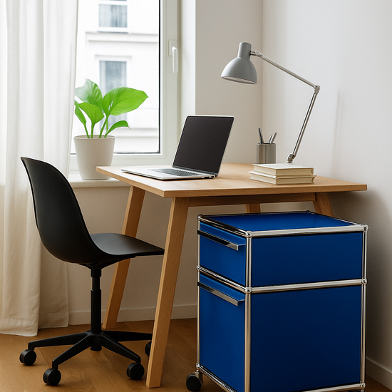 Der USM Haller Korpus A6/A4 in Enzianblau überzeugt durch zeitloses Design, hochwertige Verarbeitung und maximale Flexibilität. Die klaren Linien und glänzenden Metallverbindungen spiegeln das ikonische USM-Design wider und machen den Korpus zum stilvollen Blickfang im Homeoffice oder Wohnbereich. Dank modularer Bauweise lässt sich der Korpus individuell anpassen und in allen USM Farben bestellen. Perfekt für stilvolle Aufbewahrung und Organisation – langlebig, vielseitig und individuell konfigurierbar.