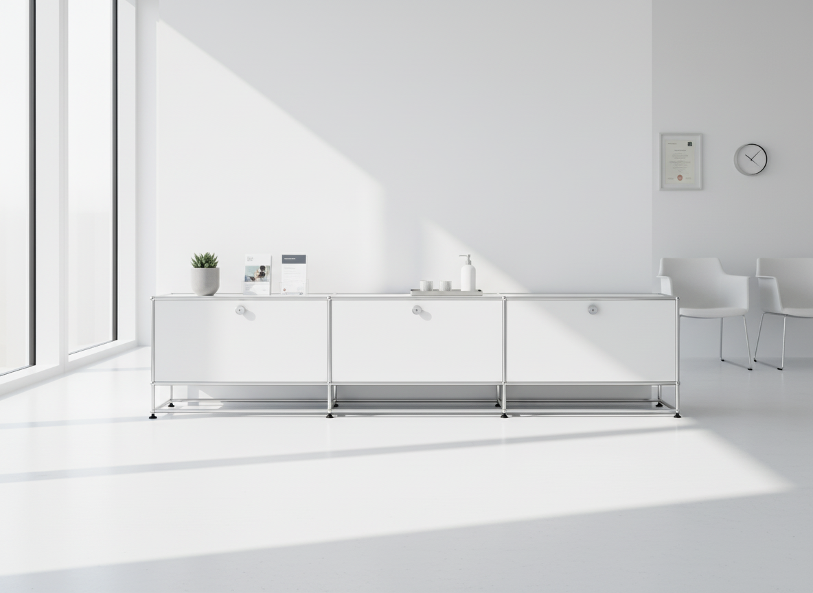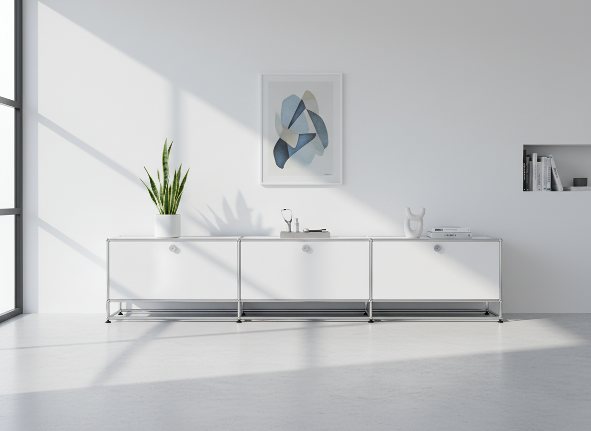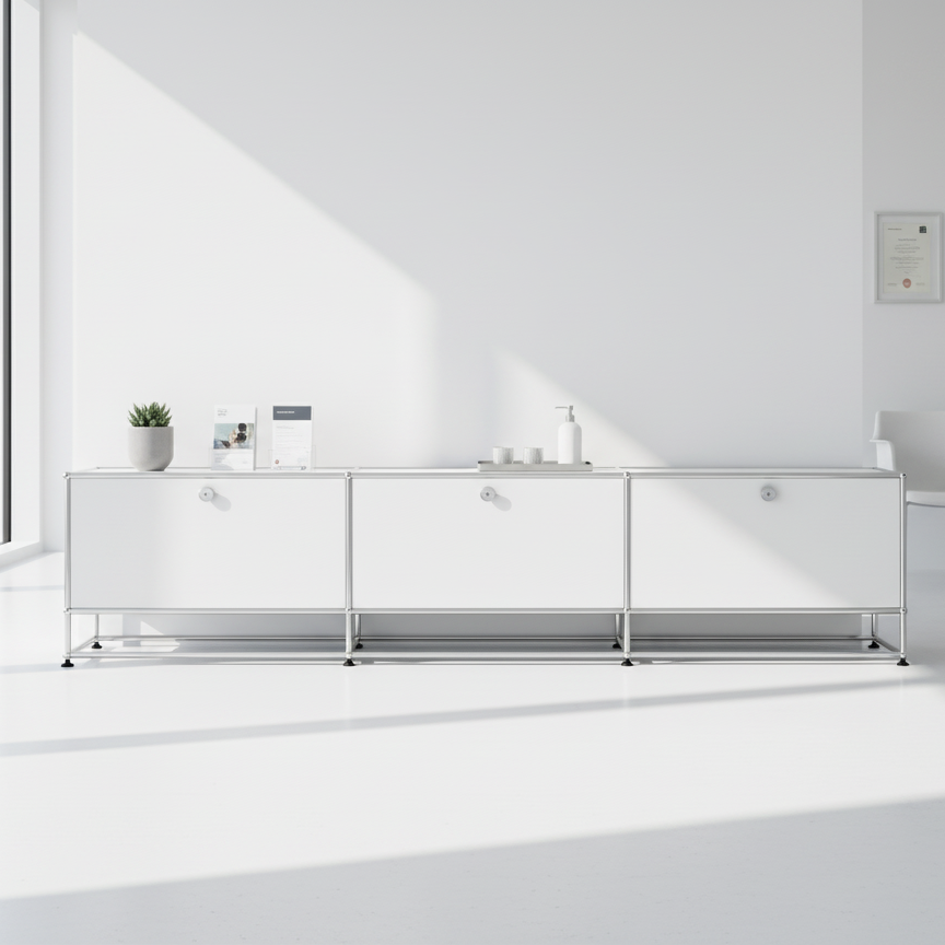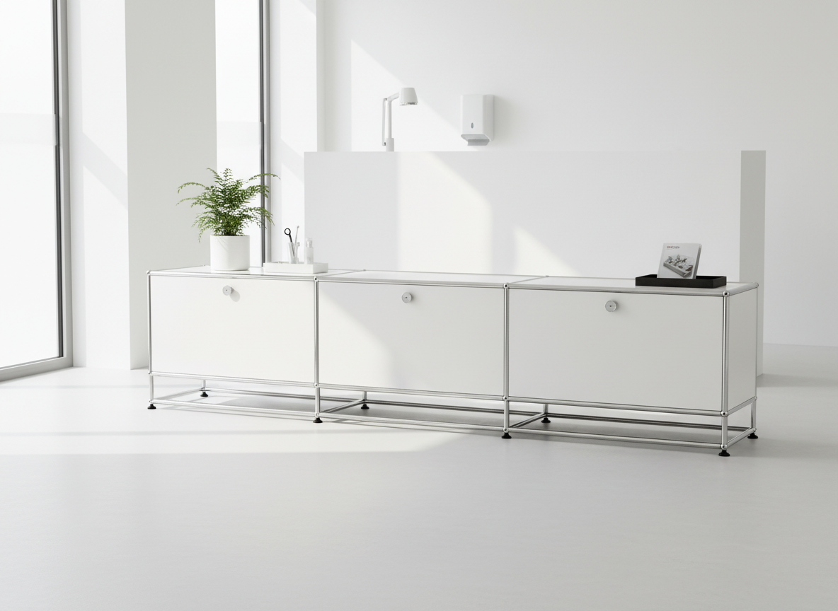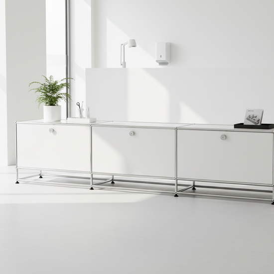 Das USM Haller Lowboard #1102 überzeugt durch zeitloses Design, klare Linien und eine makellose, glänzende Oberfläche. Gefertigt aus hochwertigen Materialien, bietet es flexible Stauraumlösungen für moderne Arbeits- und Wohnbereiche. Das Lowboard ist in allen USM Farben erhältlich und kann individuell konfiguriert werden, um sich perfekt an Ihre Bedürfnisse anzupassen. Die präzise Verarbeitung und das modulare System machen das USM Haller Lowboard #1102 zur idealen Wahl für stilbewusste Einrichtungen, die Wert auf Qualität und Funktionalität legen.