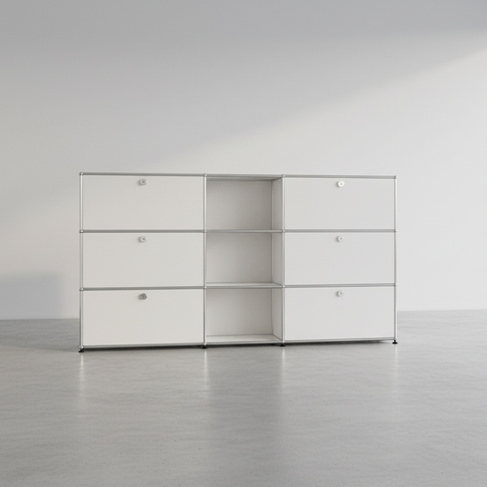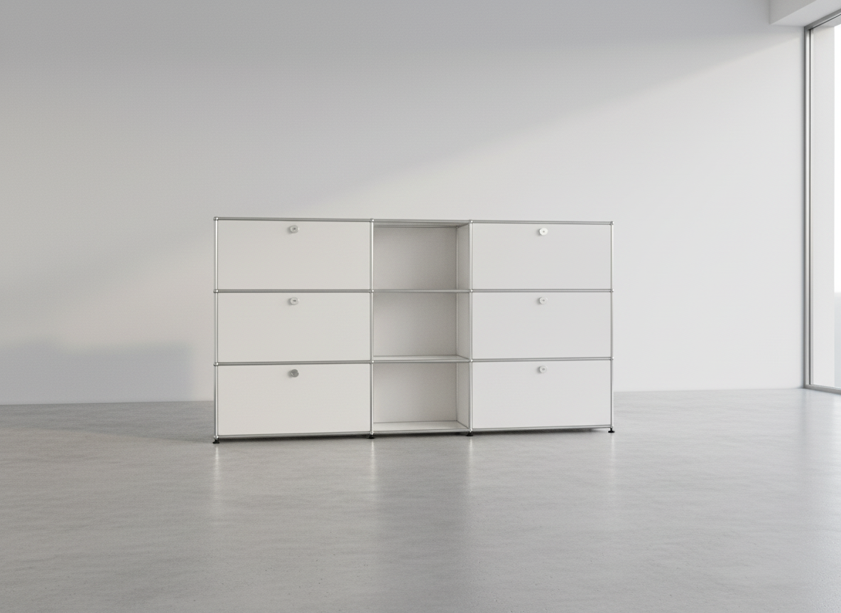 Das USM Haller Regal #1100 überzeugt durch zeitloses Design, hochwertige Verarbeitung und maximale Flexibilität. Mit klaren Linien und modularen Elementen passt sich das Regal jedem Wohnstil an und bietet vielseitige Einsatzmöglichkeiten – ob als stilvolles Bücherregal, elegantes Sideboard oder praktisches Aufbewahrungssystem. Das USM Haller Regal ist in allen USM Farben erhältlich und kann individuell konfiguriert werden, um perfekt auf Ihre Bedürfnisse und Ihren Raum zugeschnitten zu sein. Setzen Sie auf langlebige Qualität und modernes Design mit dem USM Haller Regal #1100 – die ideale Lösung für stilvolle und funktionale Wohn- und Arbeitsbereiche.