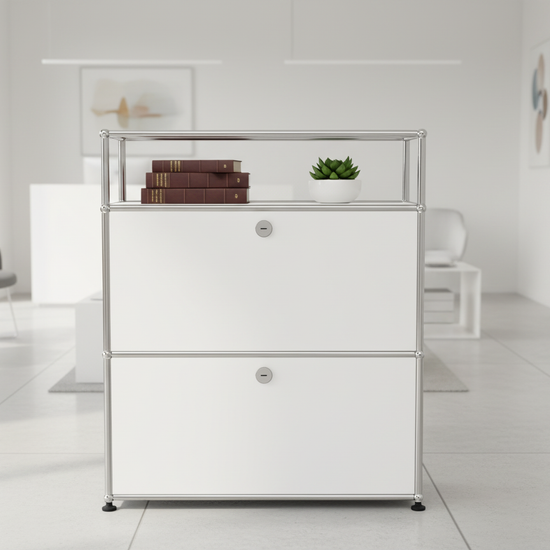 Das USM Haller Regal #1101 überzeugt durch zeitloses Design, hochwertige Verarbeitung und klare Linienführung. In Reinweiss präsentiert es sich besonders modern und fügt sich harmonisch in jede Praxis, Büro- oder Wohnumgebung ein. Das Regal bietet flexible Stauraumlösungen und kann individuell in allen USM Farben konfiguriert werden. Dank modularer Bauweise lässt sich das USM Haller Regal #1101 optimal an Ihre Bedürfnisse anpassen und bleibt dabei stets stilvoll und funktional. Ideal für anspruchsvolle Kunden, die Wert auf Qualität, Langlebigkeit und ein minimalistisches Erscheinungsbild legen.