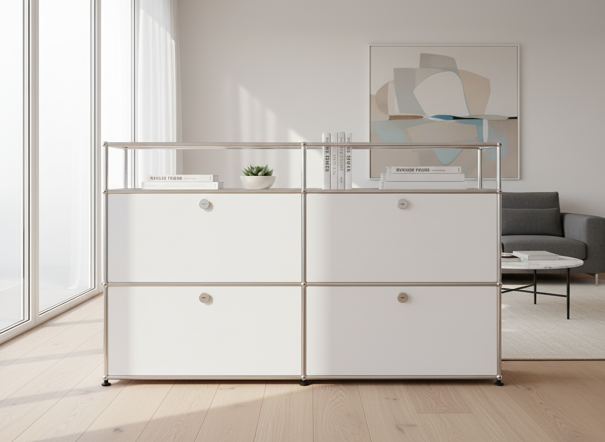 Das USM Haller Regal #1108 überzeugt durch zeitloses Design, hochwertige Verarbeitung und maximale Flexibilität. Mit seinen klaren Linien und modularen Elementen passt es sich jedem Wohnstil an und bietet vielseitige Einsatzmöglichkeiten – ob als stilvolles Bücherregal, elegantes Sideboard oder funktionales Aufbewahrungssystem. Das Regal ist in allen USM Farben erhältlich und kann individuell konfiguriert werden, um perfekt auf Ihre Bedürfnisse und Ihren Raum zugeschnitten zu sein. Setzen Sie auf langlebige Qualität und gestalten Sie Ihr Zuhause mit dem ikonischen USM Haller Regal #1108.