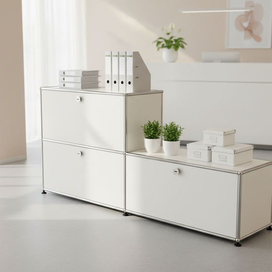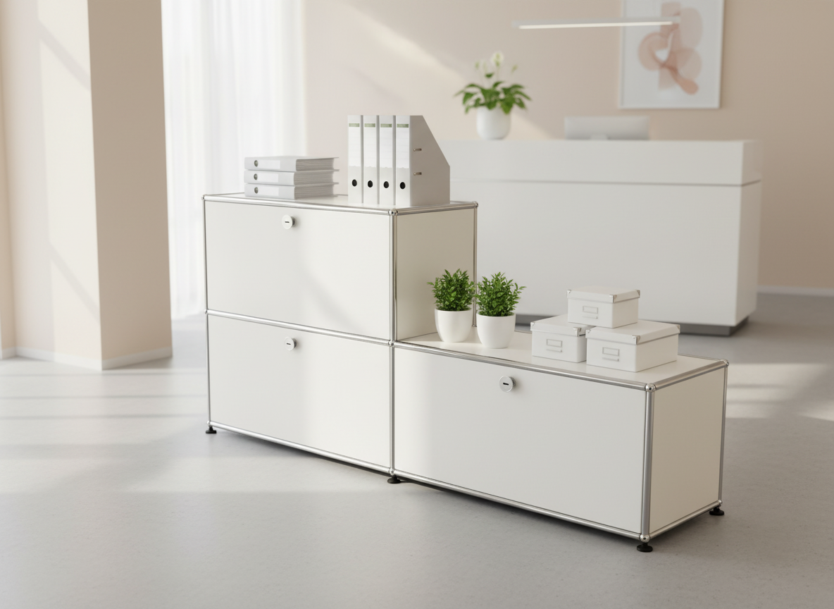 Das USM Haller Regal #1447 überzeugt durch zeitloses Design, hochwertige Verarbeitung und maximale Flexibilität. Die modulare Bauweise mit charakteristischer Metallrohrstruktur und glänzenden Oberflächen macht das Regal zur idealen Lösung für moderne Arbeits- und Praxisräume. Dank individueller Konfigurationsmöglichkeiten und einer breiten Auswahl an USM Farben lässt sich das Regal perfekt an Ihre Bedürfnisse anpassen. Die klaren Linien und die makellose Verarbeitung sorgen für eine professionelle, aufgeräumte Optik. USM Haller Regal #1447 – stilvolle Organisation und langlebige Qualität für höchste Ansprüche.