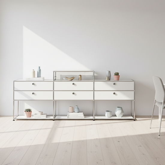 Das USM Haller Regal #1450 überzeugt durch zeitloses Design, hochwertige Verarbeitung und maximale Flexibilität. Mit klaren Linien und modularen Elementen passt sich das Regal jedem Einrichtungsstil an und bietet vielseitige Einsatzmöglichkeiten im Homeoffice, Wohnzimmer oder Büro. Das Regal ist in allen USM Farben erhältlich und kann individuell konfiguriert werden, um Ihren persönlichen Anforderungen gerecht zu werden. Dank der robusten Materialien und der präzisen Fertigung steht das USM Haller Regal #1450 für Langlebigkeit und Stilbewusstsein. Ideal zur stilvollen Aufbewahrung von Büchern, Designobjekten und vielem mehr.