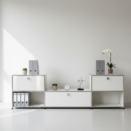 Das USM Haller Regal #1453 überzeugt durch zeitloses Design, hochwertige Verarbeitung und maximale Flexibilität. Mit klaren Linien und modularen Elementen bietet das Regal vielseitige Einsatzmöglichkeiten – ideal für moderne Arbeits- und Wohnbereiche. Die glatte Oberfläche und das minimalistische Erscheinungsbild unterstreichen die elegante Optik. Das USM Haller Regal #1453 ist in allen USM Farben erhältlich und kann individuell konfiguriert werden, um perfekt auf Ihre Bedürfnisse abgestimmt zu werden. Setzen Sie auf langlebige Qualität und stilvolle Organisation mit dem USM Haller Regal #1453.