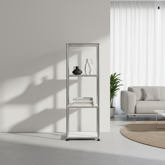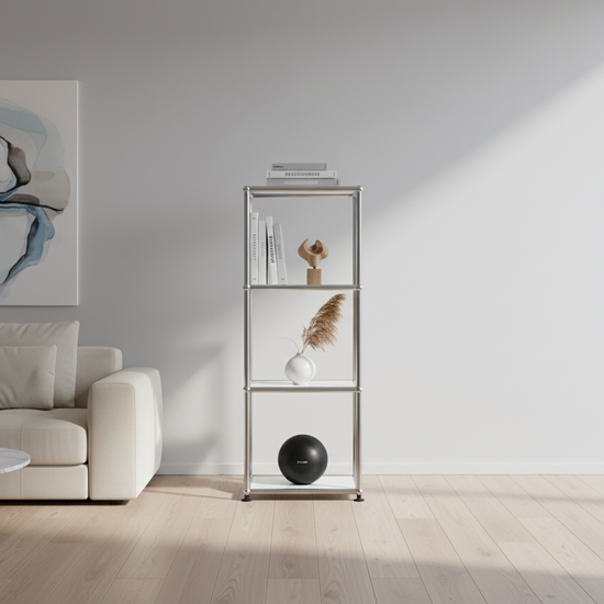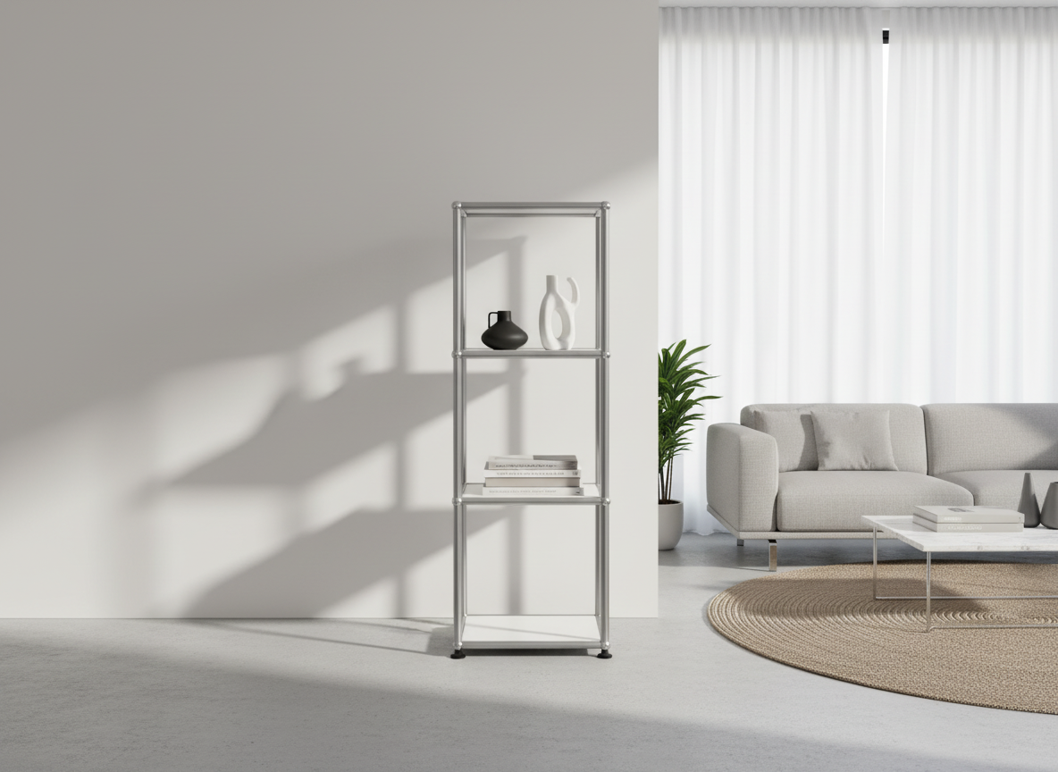 Das USM Haller Regal 1x3 #1020 überzeugt durch zeitloses Design, hochwertige Verarbeitung und maximale Flexibilität. Das elegante Regal in Reinweiß bietet drei offene Fächer und fügt sich nahtlos in moderne Wohn- und Arbeitsbereiche ein. Dank der modularen Bauweise lässt sich das USM Regal individuell anpassen und in allen USM Farben bestellen. Perfekt für stilvolle Aufbewahrung und als Design-Statement – das USM Haller Regal 1x3 #1020 vereint Funktionalität mit Ästhetik und ist die ideale Wahl für anspruchsvolle Einrichtungslösungen.