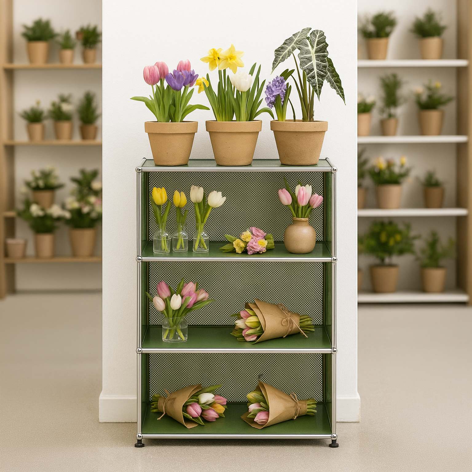Perfekt für die Organisation von Büchern, Dekorationsgegenständen oder anderen persönlichen Gegenständen. Hergestellt nach den qualitativen Standards von USM Haller, zeichnet sich dieses Regal nicht nur durch sein stilvolles Design, sondern auch durch seine Langlebigkeit und Anpassungsfähigkeit aus.