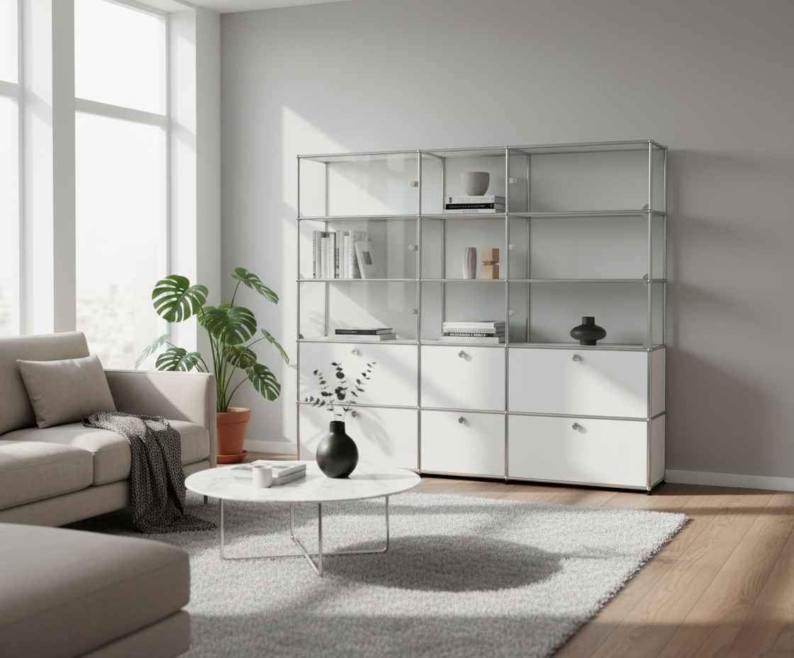 3x Glastüre auf Metallwand Linksbündig