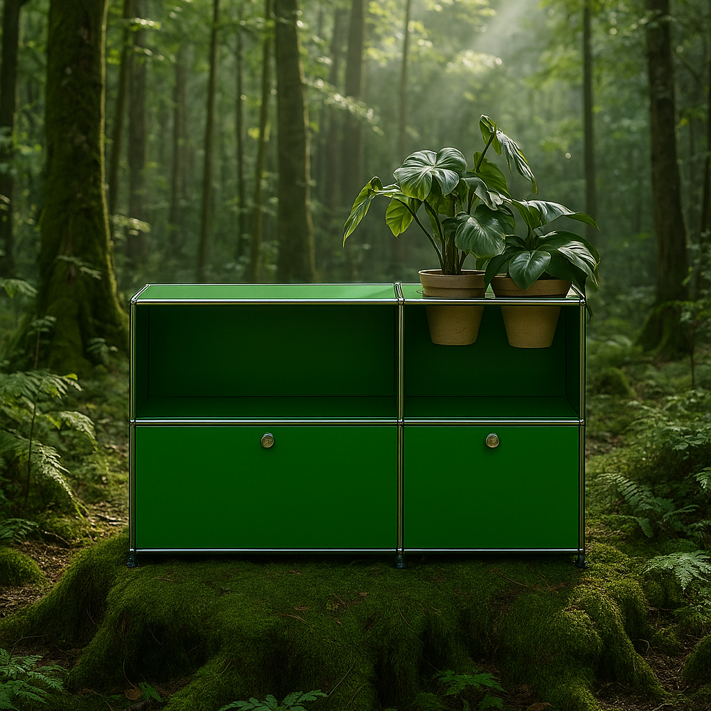 Entdecken Sie das gebrauchte USM Haller Regal in sattem Grün – ein hochwertiges, modulares Designmöbel, das durch klare Linien und glänzende Metallverbindungen überzeugt. Das USM Regal bietet flexible Gestaltungsmöglichkeiten und kann individuell an Ihre Wünsche angepasst werden. Wählen Sie aus allen USM Farben und konfigurieren Sie Ihr Regal nach Maß. Ideal für stilvolle Aufbewahrung im Büro oder Zuhause. Profitieren Sie von langlebiger Qualität und zeitlosem Design zum attraktiven Preis.