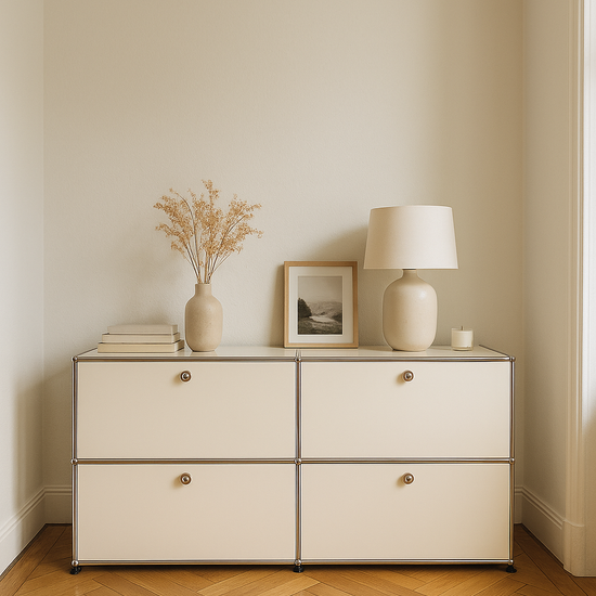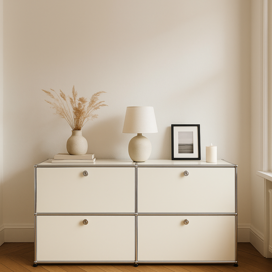 Das USM Haller Sideboard vereint minimalistisches Design mit maximaler Funktionalität. Gefertigt aus dem ikonischen USM Möbelbausystem, steht dieses Möbelstück für modulare Vielseitigkeit, hochwertige Materialien und zeitlose Ästhetik – ein Statement für jedes stilbewusste Zuhause oder Büro.