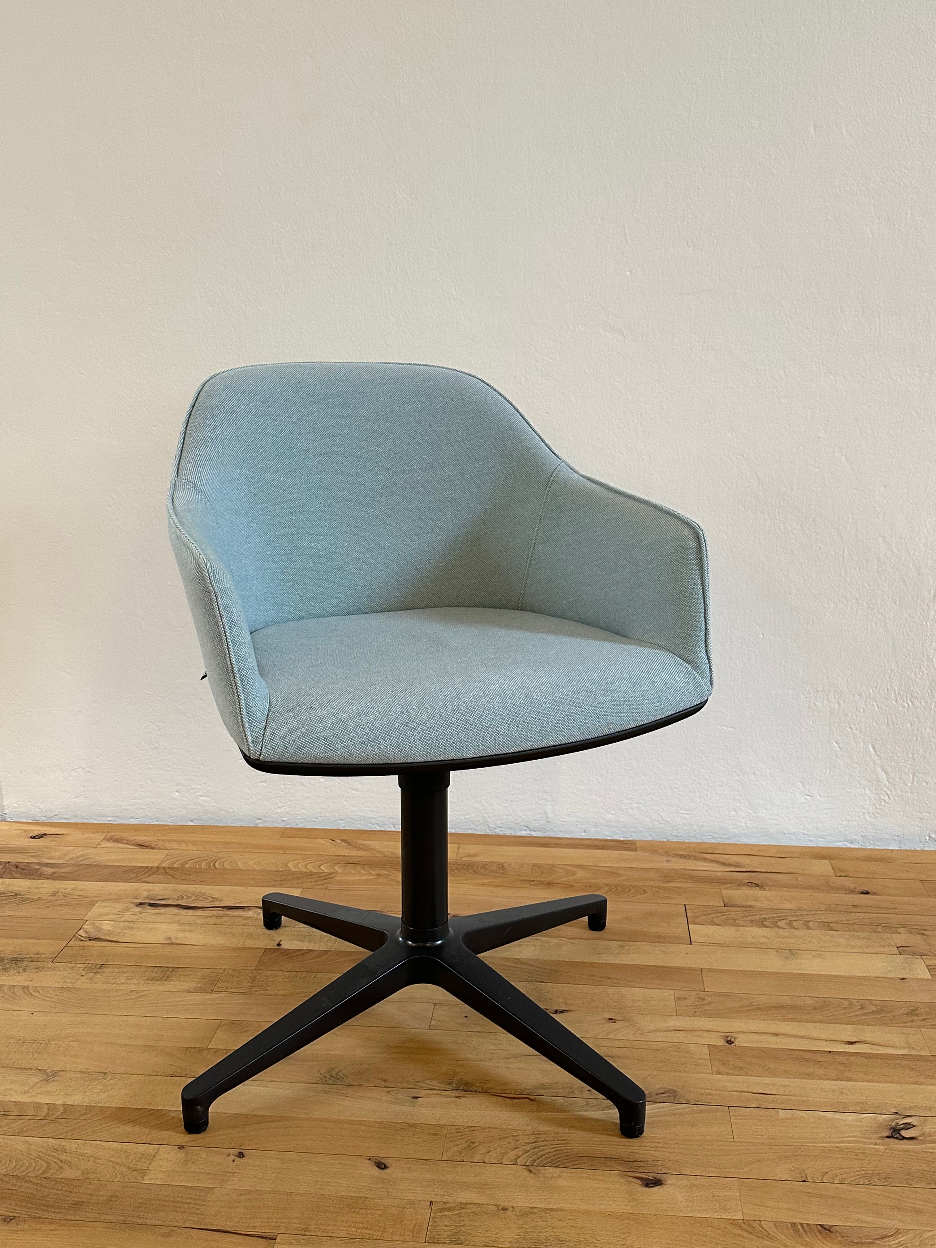 Der Softshell Chair mit vierstern Untergestell wurde von den Brüdern Bouroullec für Vitra entworfen. Die halbhohe Sitzschale ist mit Plano Stoff bezogen und sorgt für eine gemütliche Atmosphäre.